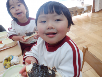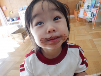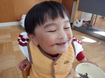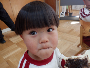 今日は特別なクリスマスケーキをみんなで食べたよ・・indecision