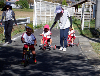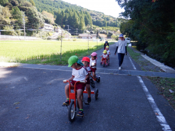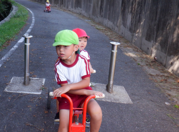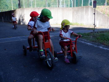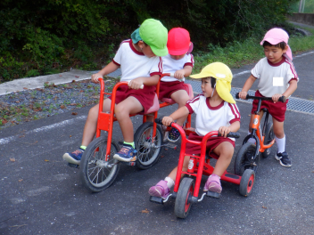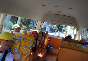 今日は異年齢児で「乗り物さんぽ」