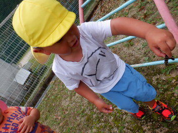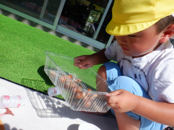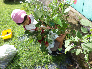 幼稚園で収穫できたナスを与えてみます・・・laugh