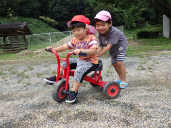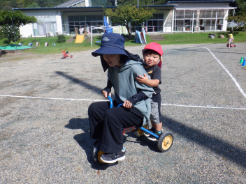 後ろに満3歳児をに乗せて・・・blush