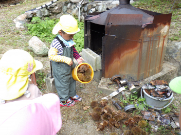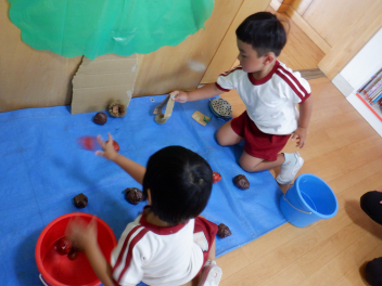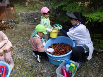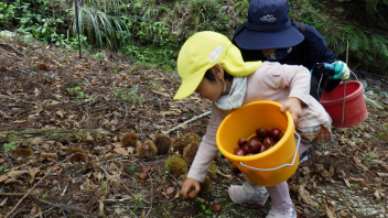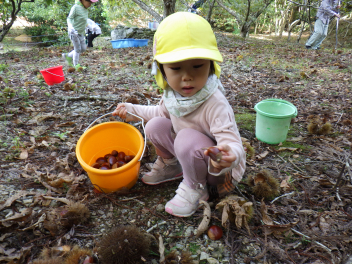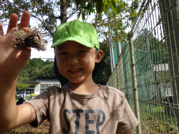 イガ拾いも楽しい遊びの一つです
