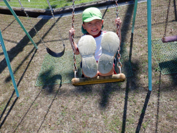 「ブランコは足を伸ばして・・・曲げてsad