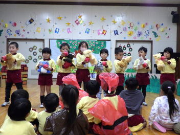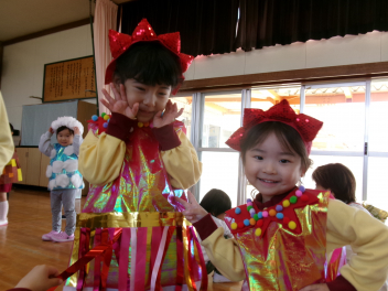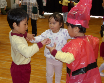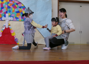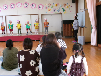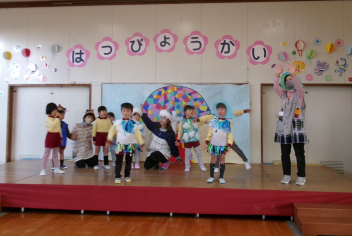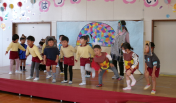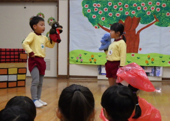 今日は未就園児クラスのりす・こりす組があり、年少・年中のダンスや年長の劇を披露しましたsad
