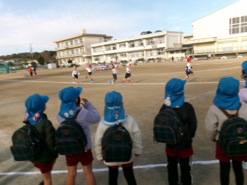 年長児が、麁玉小学校のマラソン大会の応援に行ってきました!!