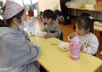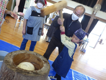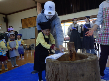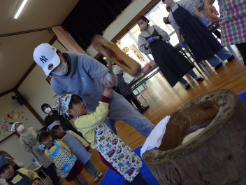 今回の餅つき会は地域の方・卒園児保護者・在園児保護者ボランティア・在園児保護者の食事見守りボランティアとたくさんの方に御協力いただきましたlaugh