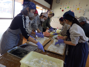 ボランティアさんがあんこ餅や磯部もち・黄な粉もちを丸めてくれますsmiley