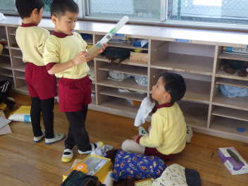 冬休み用に絵本を3冊借りる予定です。子供たちは絵本を通して世界を広げていきます。同じ絵本を繰り返し聞き、繰り返し想像しながら自分の中に世界を広げていきます。お休みの期間にたくさん読み聞かせてあげてください。おじいちゃんやお父さんに読み聞かせてもらうのも、雰囲気が変わって楽しめるようです