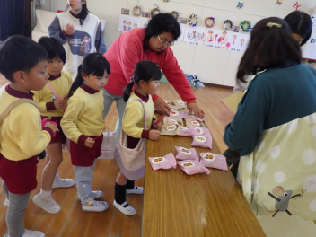 毎日登園を見守ってくれているスクールガードさんが、プレゼントを持ってきてくれました