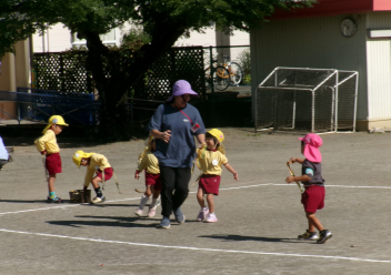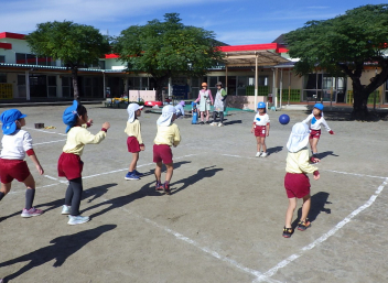 一緒にドッジボール!相手チームまでボールが届くようになってきたよ