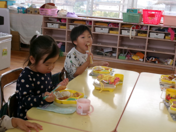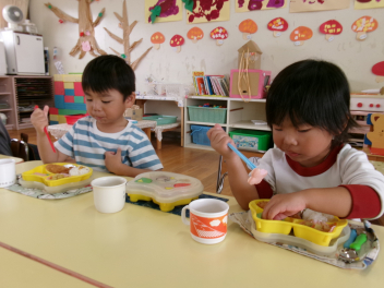 11月から年少さんは弁当タイムにお箸の練習が始まりました!