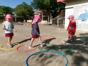 知らない人が見守る中でもニコニコと元気に遊ぶ年少さんでした