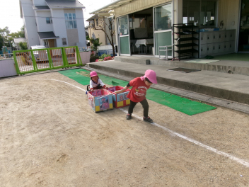 今日はとても良い天気だったので、未就園のりす・こりす組さんから年長さんまで、みんな戸外遊びを楽しめましたsad