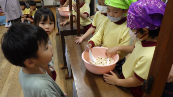 年中さんも年少さんも「おいしい~」と、モリモリ食べていました