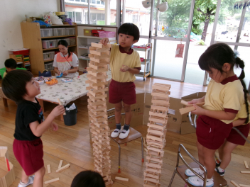 すごい!高く積みあがってきたね