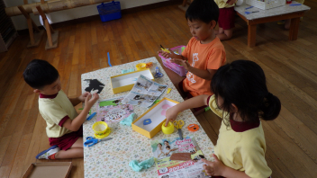 屋台や出店がもっと充実するように年長さんの準備が続きます。
