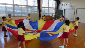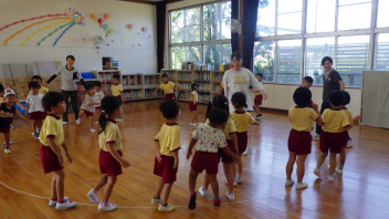 • 全園児で遊戯室に集合し、なかよしタイムを行いました。