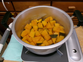 年中さんが育てたかぼちゃを、園務員さんが美味しい煮物にしてくれました