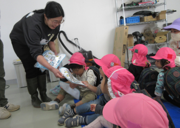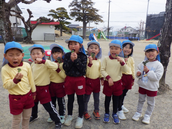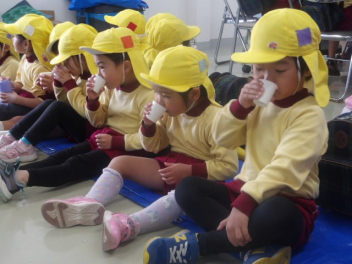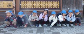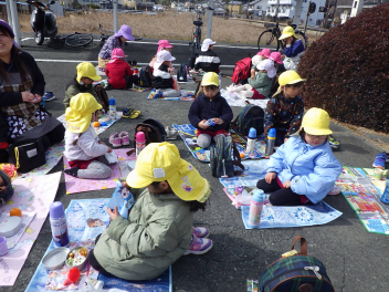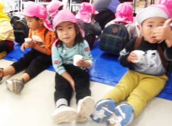 少し遠いので、年長さんが年少さんを連れていってくれました。