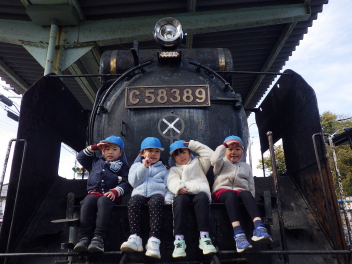 目の前を電車が通る迫力なんて!!「ぶつかりそう!!」「すごいね!!」