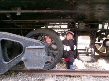 電車の下でかくれんぼ?
