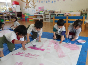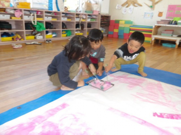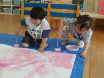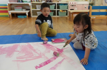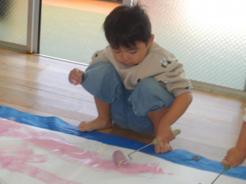 絵の具を使ってローラー遊びをしましたsad