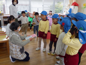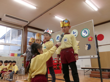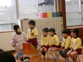 今回の誕生会から年中さんが司会を担当します。