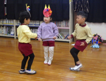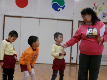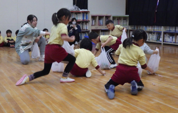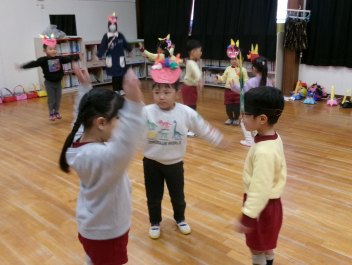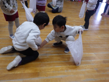 今日は年少さんで保育参加会がありました。お母さん先生と正月遊びをしたり〇△□の引っ越し鬼を楽しみましたsad