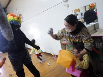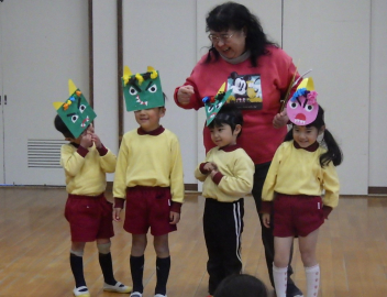 節分に向け、自分のお腹の中にいる鬼について考えたり、立ち向かう気持ちが育つように励ましたりしています。節分は少し怖いですが心の成長にもつながる行事です。『一緒に立ち向かっていこう』『大丈夫だよ』と毎日送り出してあげてください。