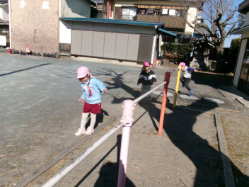 鉄棒の周りの枠の上でじゃんけんポン!