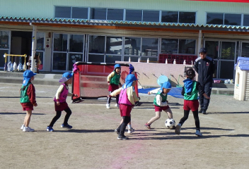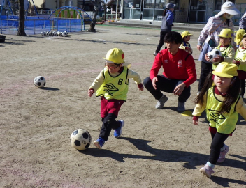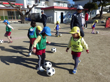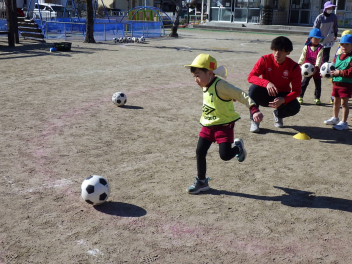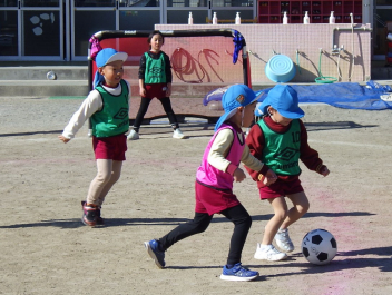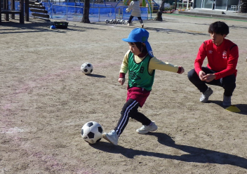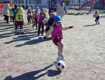 年中さんは初めてのサッカー、年長さんも久しぶりの体験で、サッカーの楽しさを感じることができたようです。