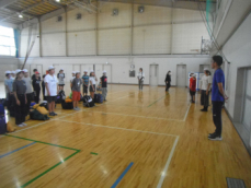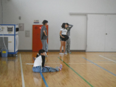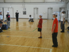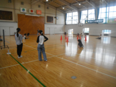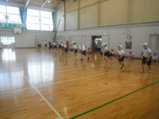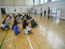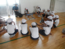 3年生は体育館で来月の始めに迫った新体力テストに備えていました。私が訪れた時は、長座体前屈のやり方を確認していました。