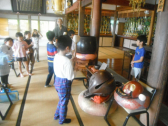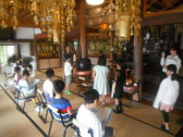 2・3時間目、2年生は滝沢にある林慶寺を訪れて、和尚様にお仕事の内容や仏様のことについて教えていただきました。子供たちは実際にかねや木魚などをたたかせてもらい、とっても嬉しそうでした。