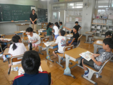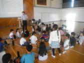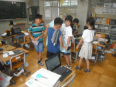 6時間目です。体育館から楽しそうな声が聞こえてきました。足を運ぶと、5年生が明後日に迫った臨海学校に向けて、キャンプファイヤーのリハーサルをしていました。木曜日、金曜日が好天に恵まれますように。