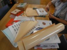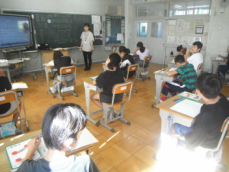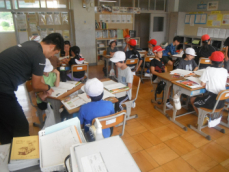 1年生は国語の授業でした。郵便局からいただいたキットを使って、手紙の書き方を習っていました。ぜひ、お世話になった方に手紙を出してもらいたいものです。