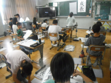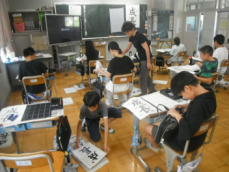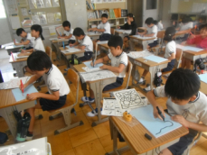 5年生は書写の授業でした。毛筆で「成長」の字に挑戦していました。「成」も「長」も書き順に注意が必要な字ですね。1画目がポイントです。
