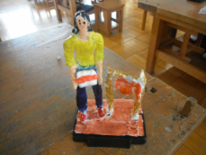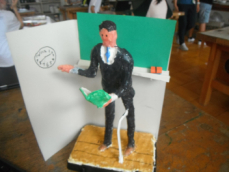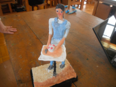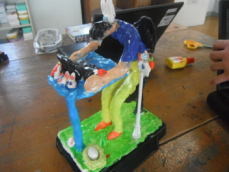 6年生は図工の授業でした。自分の将来を想像し、その姿を紙粘土で作る「未来のわたし」が完成していました。ケーキを作る人や黒板の前に立つ人など、様々な将来を形作っていました。