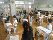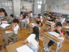4年生は社会科の授業でした。各家庭での風水害への備えを話し合っていました。「非常食はあるけど、トイレがなぁ。」「ラジオも必要だよね。」などと、各家庭の状況を比べていました。備えあれば憂いなし、我が家も今一度、確認が必要です。