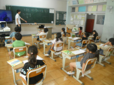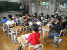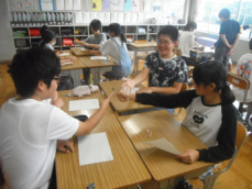 4年生は理科の授業でした。水の蒸発に関する実験を始めるところでした。2つのカップに同量の水を入れ、片方には蓋をしてその減り具合を比べるのだそうです。結果が楽しみです。