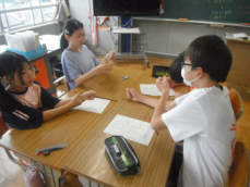 4年生は、相手の気持ちも考えながら自らの考えを伝えるという「アサーション」の方法を考えていました。また、6年生は自分の考えを伝え、聞く側はそれに共感するというゲームに取り組んでいました。