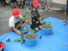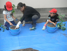 いちごいちえ さんをお招きし、1年生がイチゴの移植に挑戦していました。イチゴに合う土づくりから始まり、移植する苗の向きや方法まで、丁寧に教えてくださりました。子供たちは興味津々でお話を真剣に聞いていました。いちごいちえ さん、本当にありがとうございました。