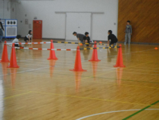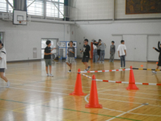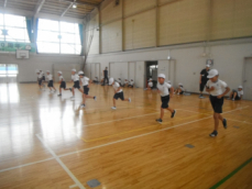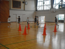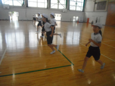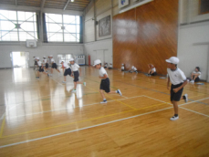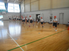 5・6年生は体育館でシャトル・ランに挑戦していました。一人一人が昨年度の記録を頭に入れ、それを超えられるように頑張っていました。