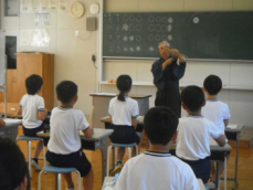 4年生は、髙林行善先生をお招きした篠笛教室に参加しました。子供たちは一人一人先生から篠笛を頂き、とっても嬉しそうでした。また、先生から笛の持ち方や音の出し方のポイントなどを教えてもらい、早速挑戦していました。