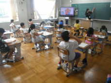 2年生は音楽の授業でした。「いるかはざんぶらこ」という曲を元気よく歌っていました。三拍子を感じながら歌うことが目標だそうです。