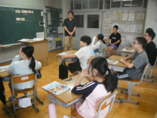 3年生はJackson先生の外国語活動の授業でした。今日はAからZまでのアルファベットを覚え、自分の名前をイニシャルで表すことに挑戦していました。