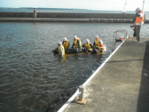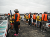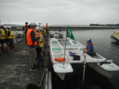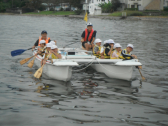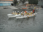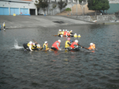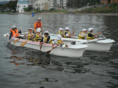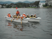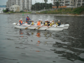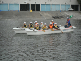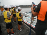 午前9時からダブルハルカヌーに挑戦しました。4つの船に分かれ、それぞれ全員でオールを漕いでいました。ハーバーを出て、かなり遠くまで漕ぎ出でていました。
