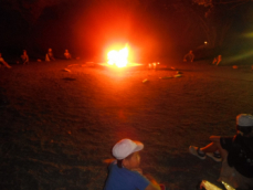午後7時からは、子供たちが楽しみにしていた キャンプファイヤー が行われました。火の儀式の間に、それぞれの学年による出し物が披露されました。どちらの学年も工夫を凝らして、見ているみんなを楽しませる内容でした。御覧になっていた 火の神 も御満悦のようでした。