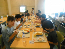 10日(木)、2日目です。午前6時30分から、朝の集いが行われました。今日の目あてを発表したり目覚めの運動をしたりしました。その後、朝食をいただきました。