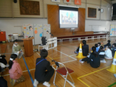 続いて、4月からの各学年の学習の様子を、校外学習を中心にして参観に来た皆様にスライドで紹介しました。