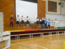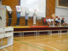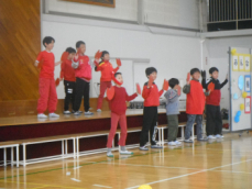 9:15から1年生「くじらとなかよくまねっこ」が始まりました。都田小の運動場やってきた くじら雲 が1年生が披露する挨拶や鍵盤ハーモニカ、マット運動などを真似するというお話でした。1年生の一人一人に得意なことがあり、それを自信もって披露できたことが立派でした。