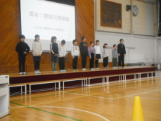 8:25、いよいよ始まりました。運営放送委員が元気な声と大きなジェスチャーで寸劇を披露しました。「さぁ、始まるぞ。」と、みんなの気持ちが盛り上がりました。